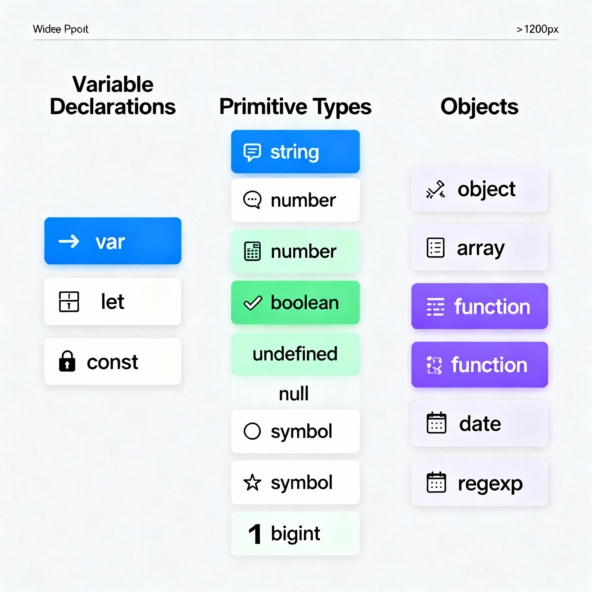 console.log(country); // USAJavaScript2. Data Types (Values Variables Can Hold)